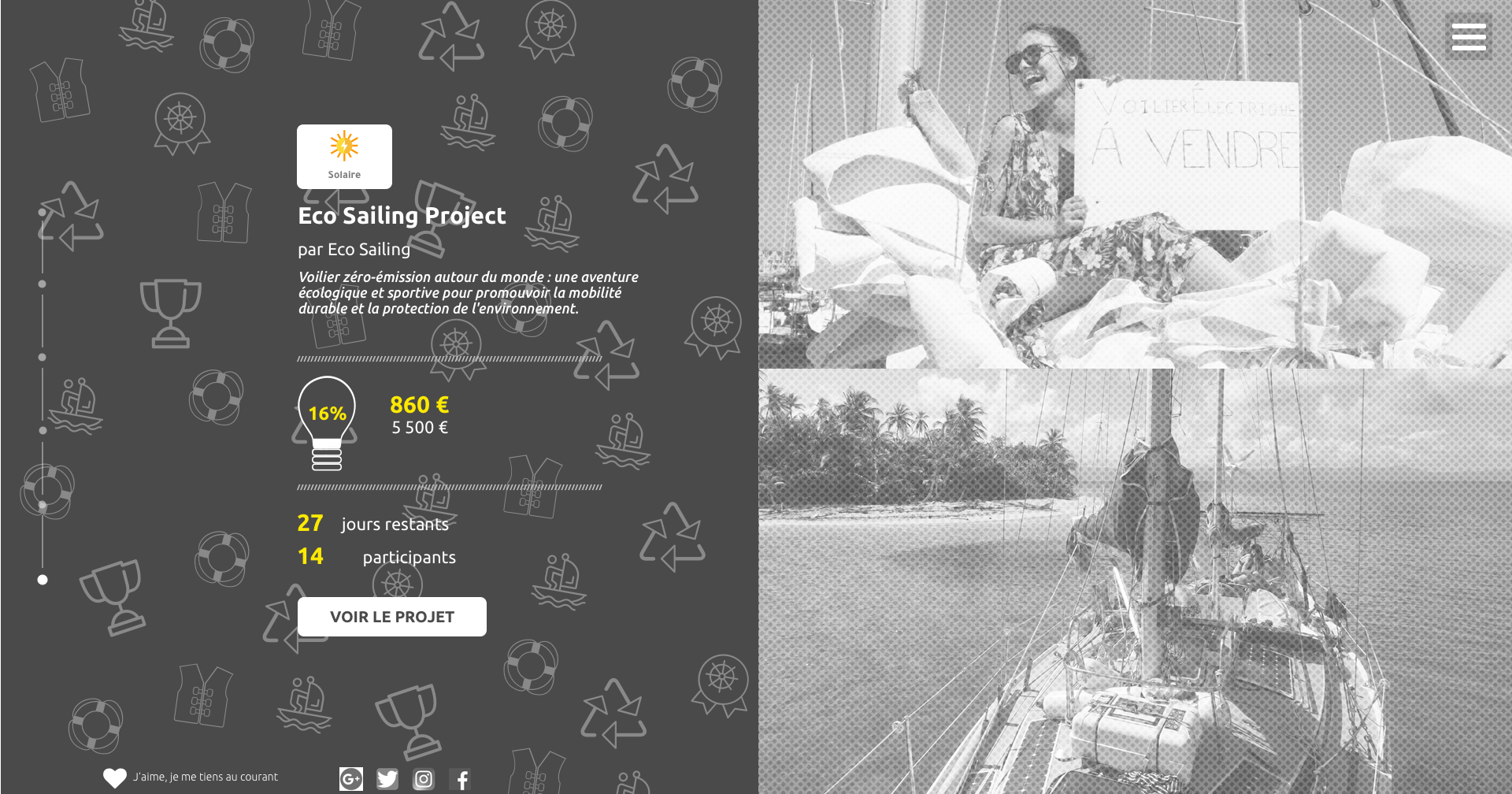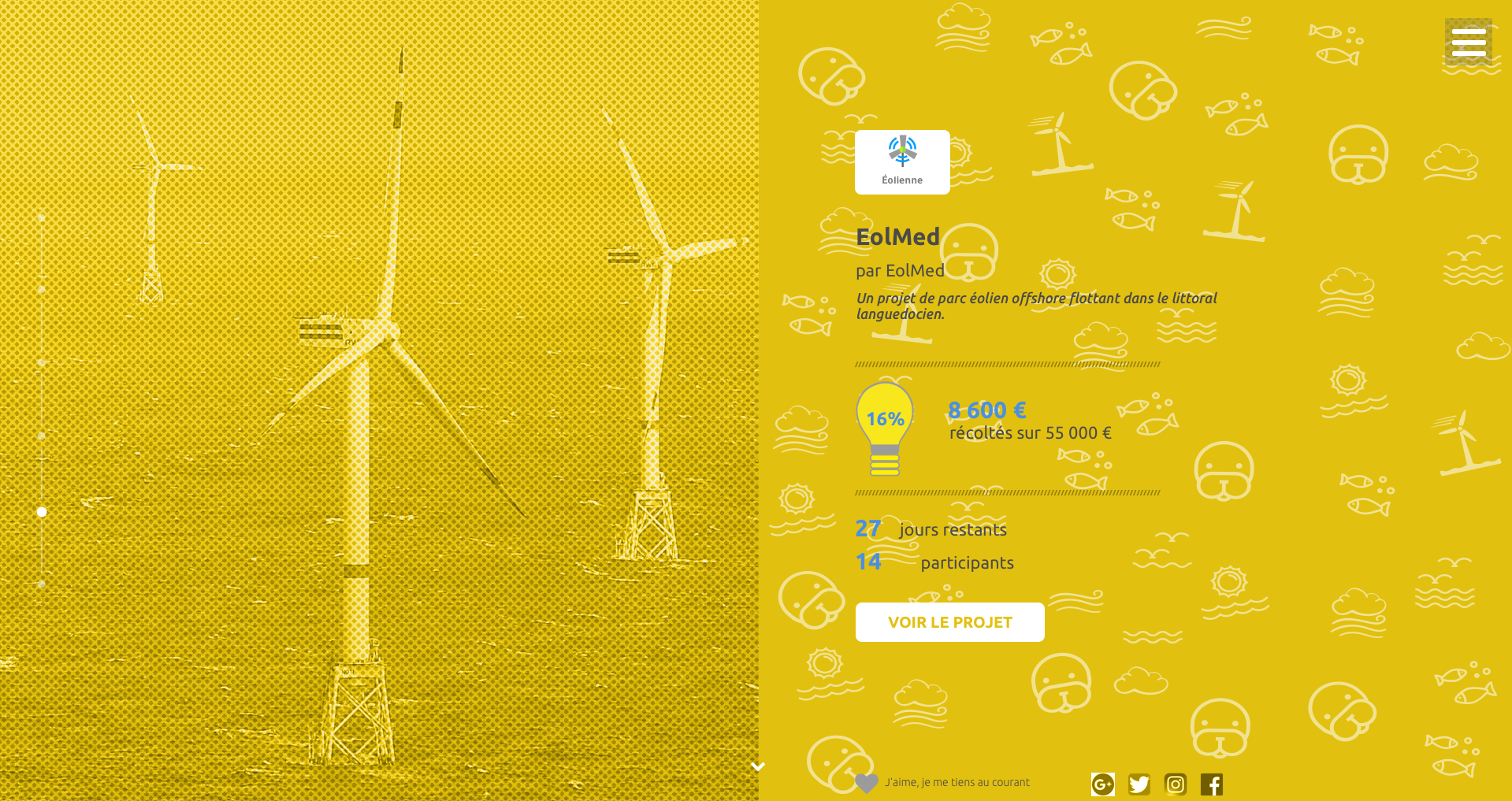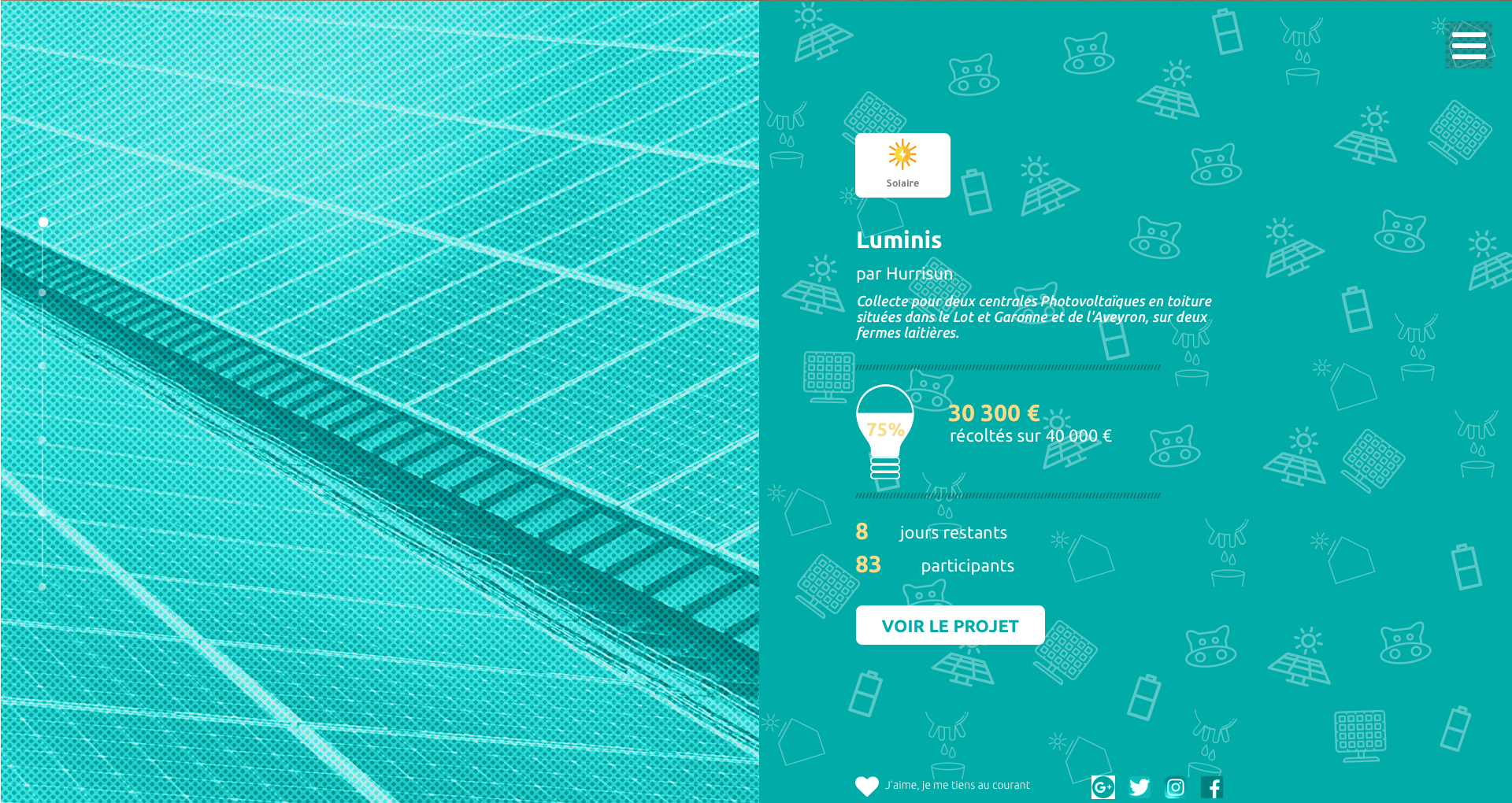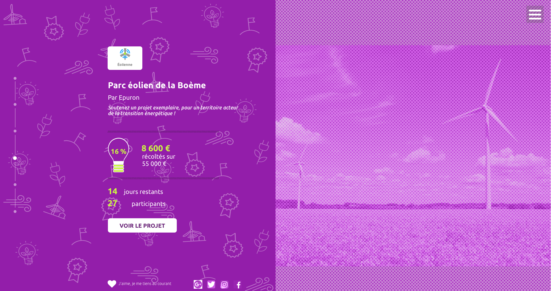 During my Web Design training, we had as a challenge to make the design of a crowdfunding site about renewable energies.