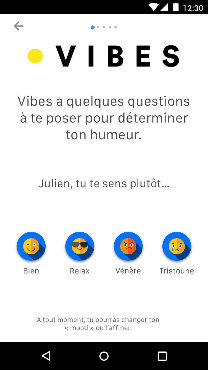 With Vibes, we do not take ourselves completely seriously. Music touches heart and soul, so we need to avoid to be too dramatic. A form of derision and shifting is at work in the application to play down the way we feel in everyday life.